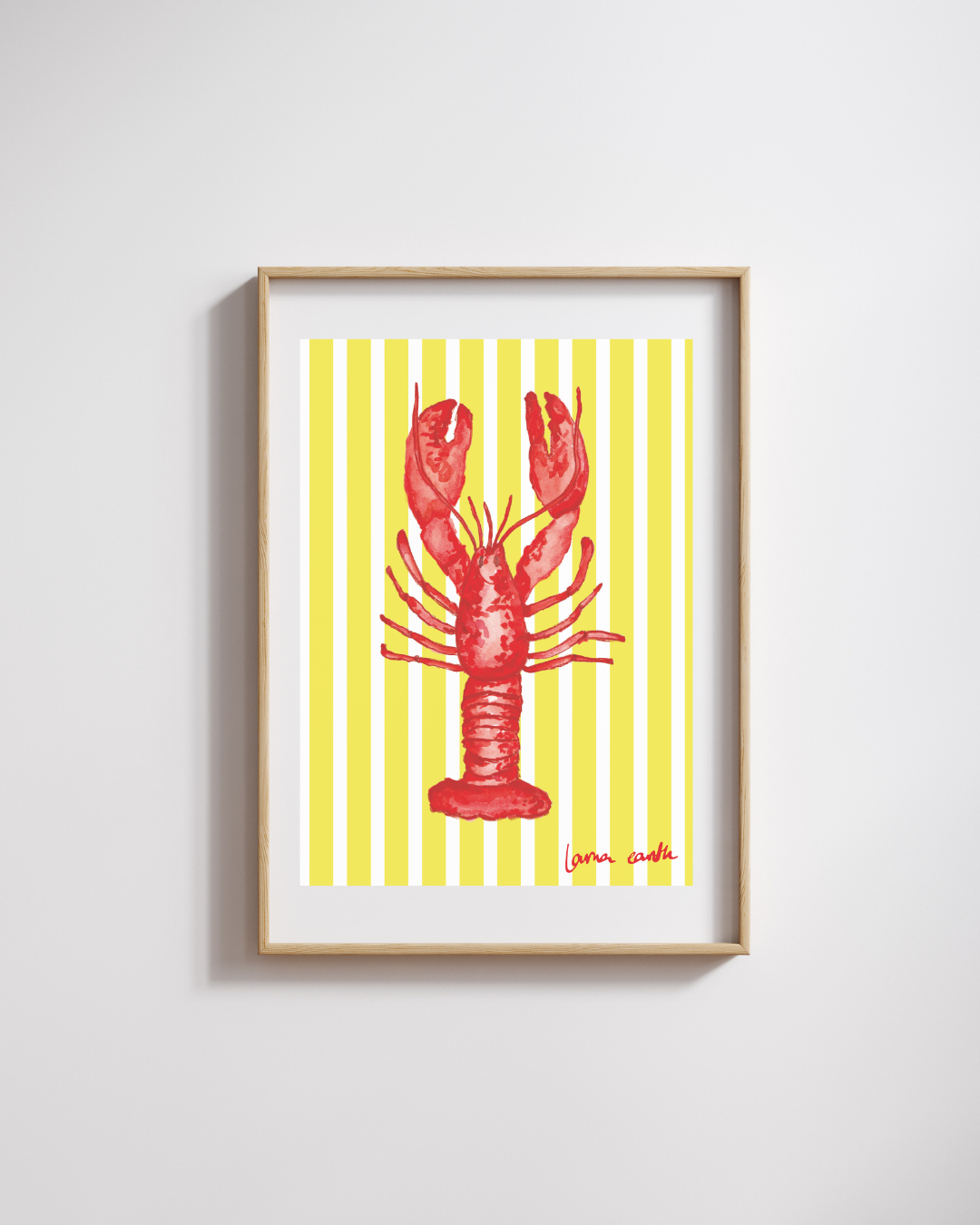 Lobster illustration from the Lorna Earth illustration collection. A sophisticated and playful touch for any space.