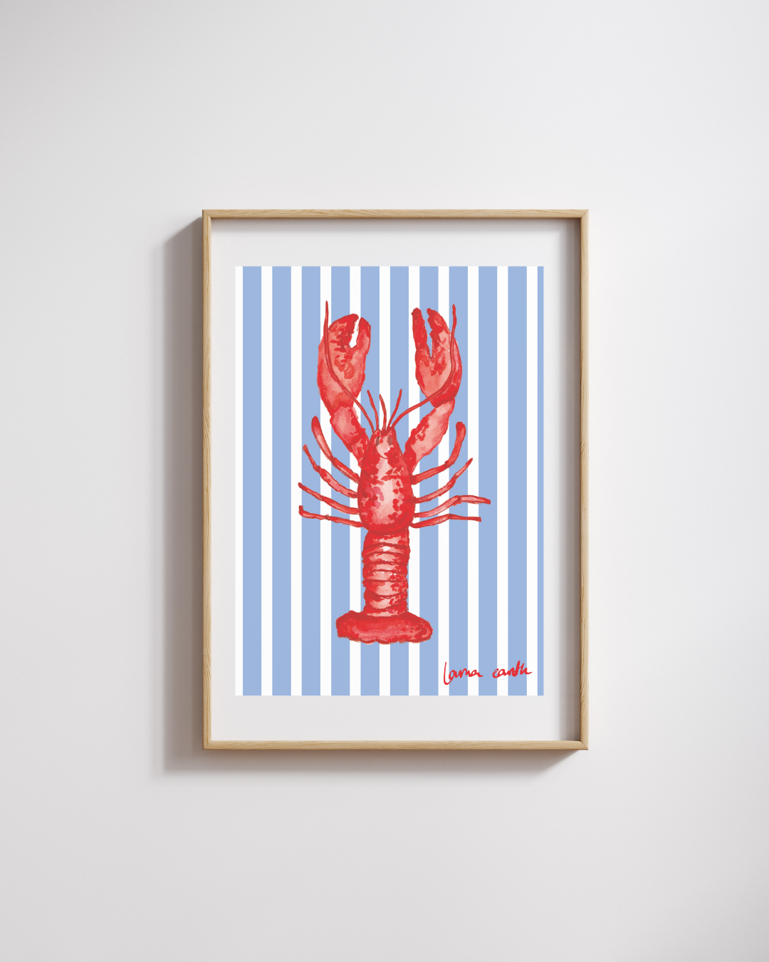 Lobster illustration from the Lorna Earth illustration collection. A sophisticated and playful touch for any space.