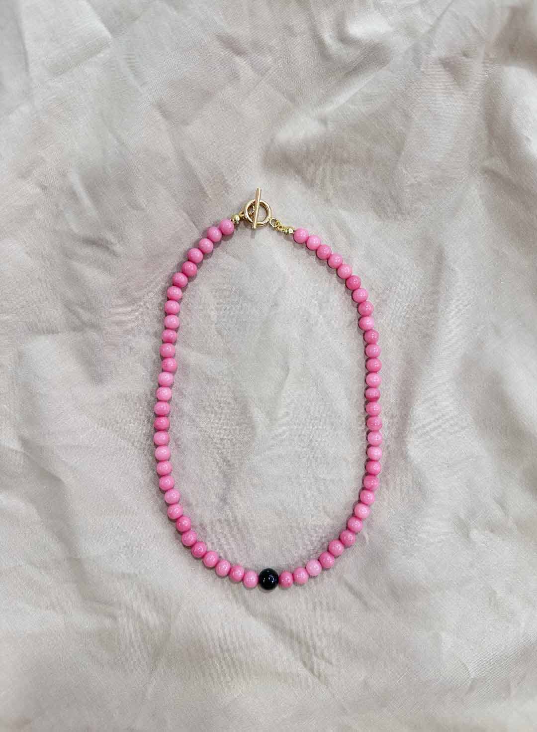 El ónix negro protege y enraíza, mientras el jade rosa suaviza y abre el corazón: juntos, equilibrio entre fuerza y ternura.