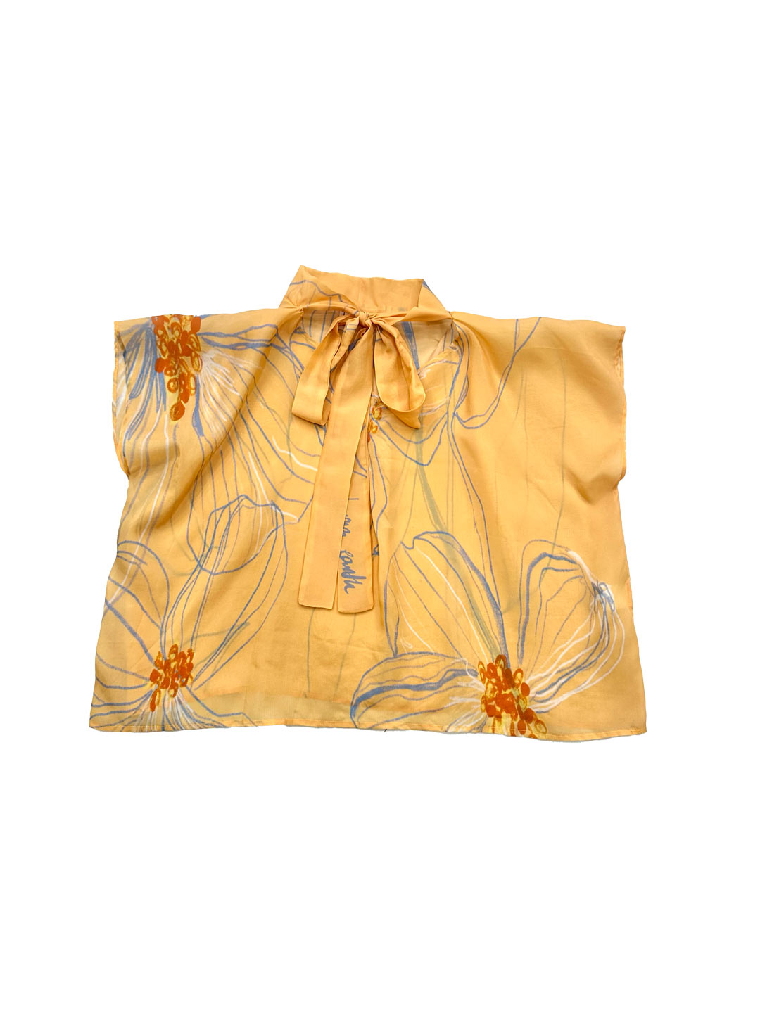 Esta blusa está confeccionada en 100% Cupro y presenta una silueta de kaftán y largos lazos que permiten múltiples formas de estilismo. Sus mangas amplias realzan la silueta fluida, mientras que la abertura en forma de V en el escote aporta el toque final perfecto.
