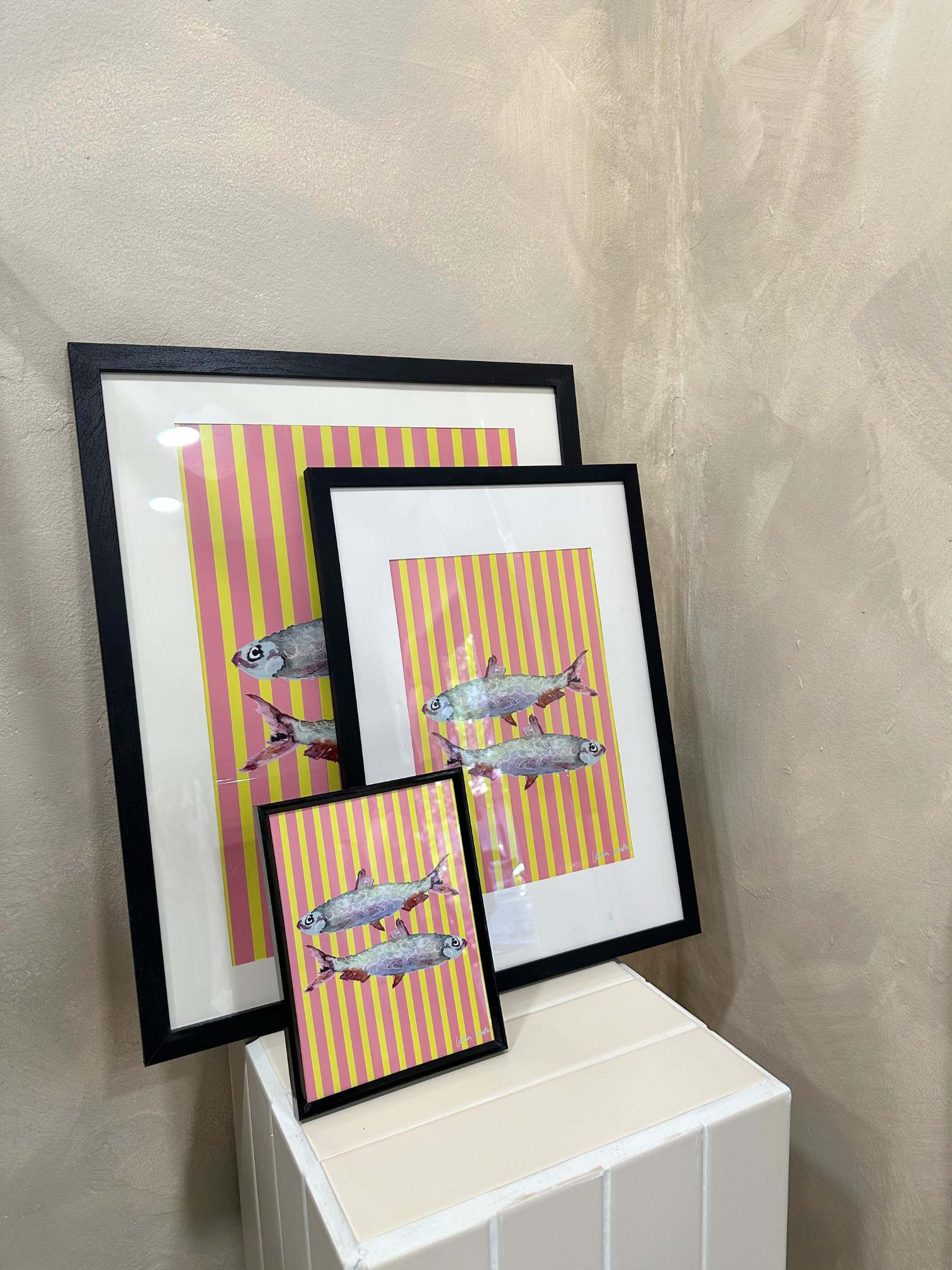 Ilustración de sardinas de la colección de ilustraciones Lorna Earth. Un toque sofisticado y divertido para cualquier espacio.