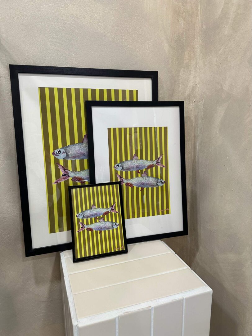 Ilustración de sardinas de la colección de ilustraciones Lorna Earth. Un toque sofisticado y divertido para cualquier espacio.