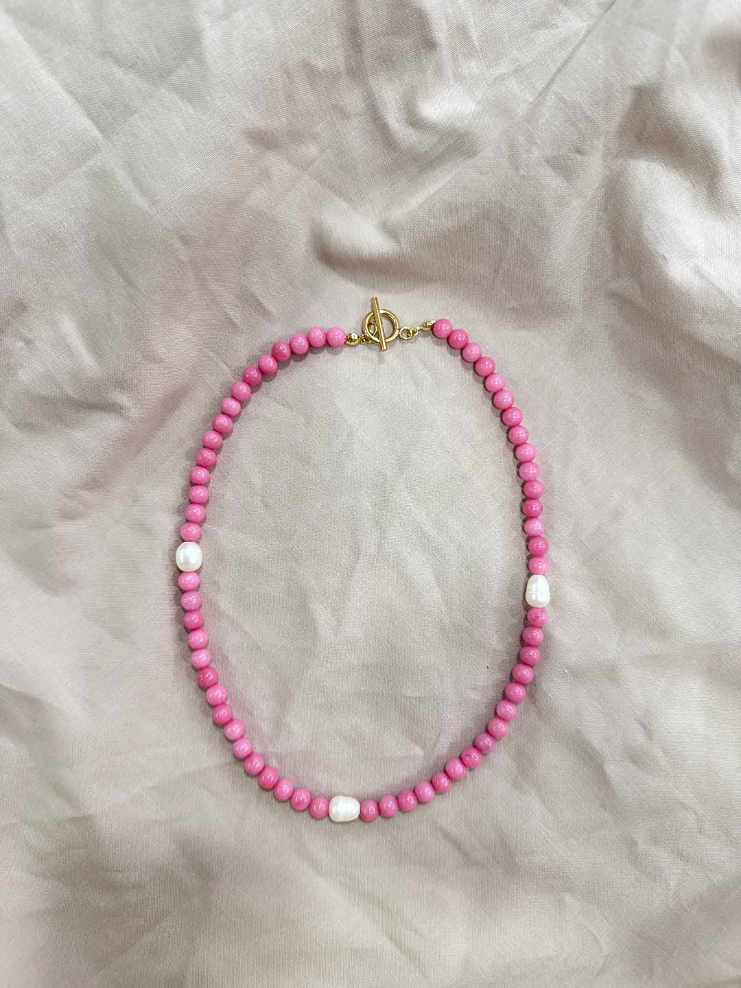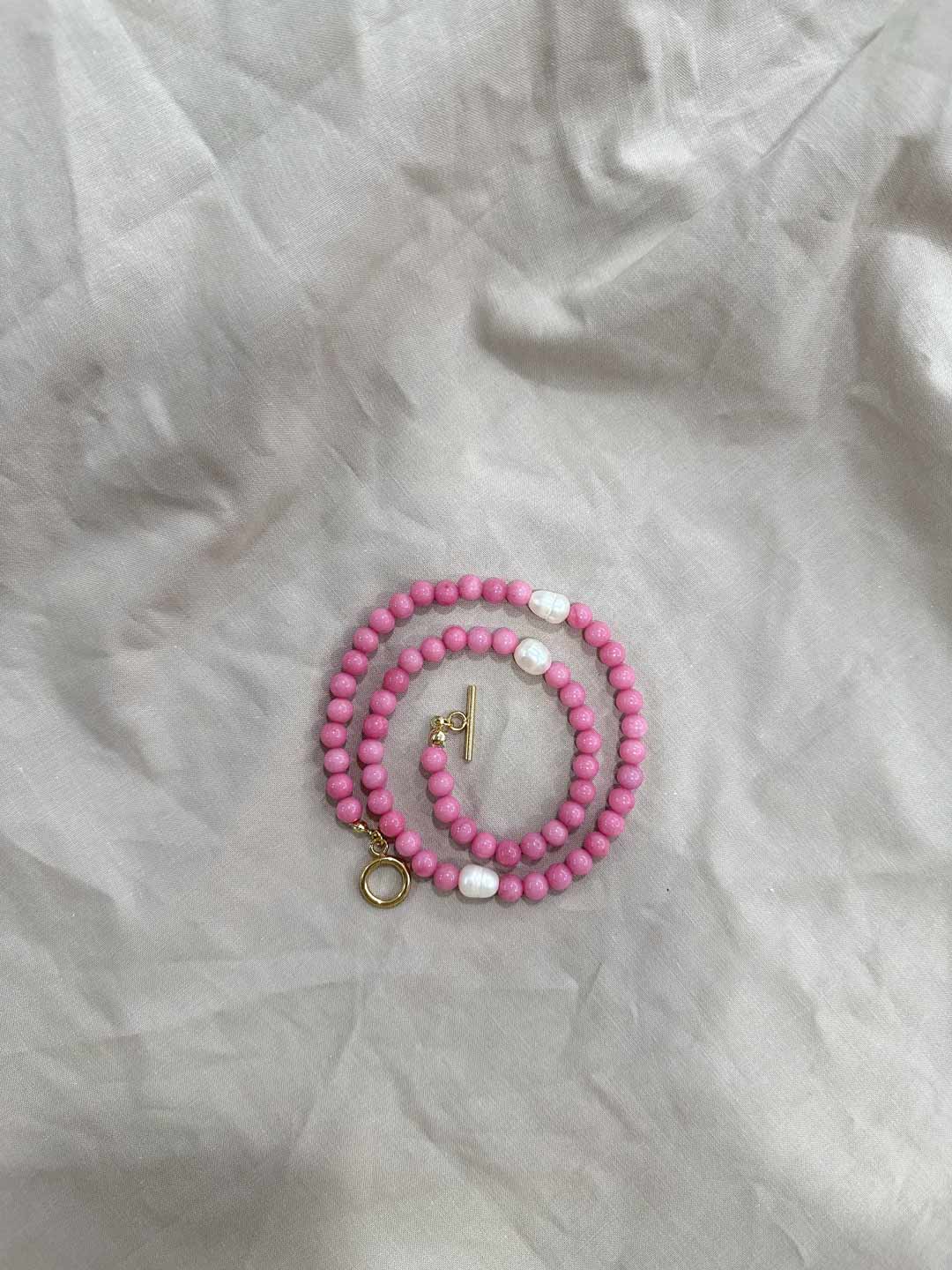 Collar elaborado con piedras de Jade y perlas de aguadulce. Incorpora un cierre dorado de acero inoxidable.